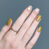 Ice your nails with sparkling spinels. Featuring mustard yellow gel, round amber rhinestones (SS16) and medium sized amber baguettes.